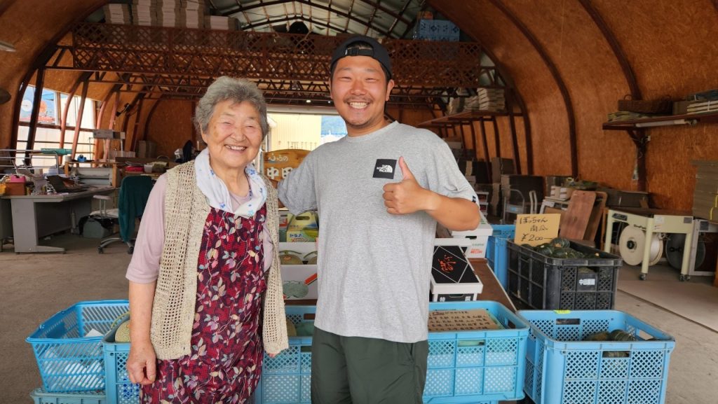 Then I pedaled 10 kilometers one way by bicycle to Nakata Farm for melons, which She had told me about! When I told them that I came here by bicycle, they were very surprised, and the melons, watermelons, and corn came out!
