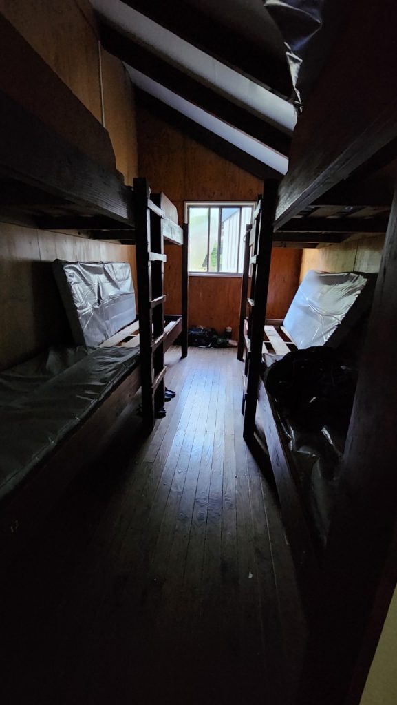 寝床は2段ベットで分厚いマットレスがあり、ガスコンロも用意されている。